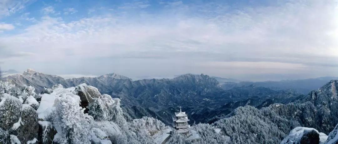 白云山玉皇閣,是觀云海賞日出的最佳場(chǎng)地。雪過天晴,這里云海蒼茫,與高低錯(cuò)落地的群山交相輝映,真正成了海外仙山,瑤池倚窗開,美景不可勝收。