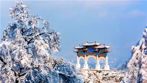 一周的連續(xù)降雪,雪后初晴的白云山景區(qū)銀裝素裹、林海雪原,雪景美不勝收。登上玉皇頂放眼望去,四野茫茫,原馳蠟象,令人頓生浩然之情。走進(jìn)九龍大峽谷,山川峽谷,氣勢(shì)恢宏,冰瀑冰掛,晶瑩剔透,壯觀秀麗。