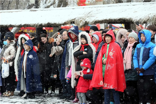 大年初六,清明上河園飄起了雪花,但是卻沒有影響游客的游園熱情、臉上的歡樂、看演出時的認(rèn)真!