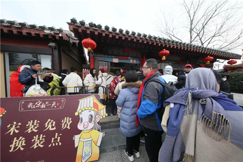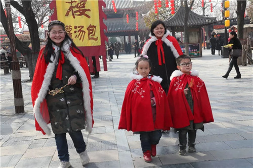 清明上河園景區(qū)特推出春節(jié)版“我在宋朝的一天”免費穿宋裝活動深受廣大游客喜愛,游客可免費在景區(qū)領(lǐng)取精心設(shè)計的“披風(fēng)”,換裝后的游客儼然成為一個個“俠客”,游走在園區(qū)中成為一道道靚麗的風(fēng)景線,“一朝步入畫卷、一日夢回千年”的穿越感油然而生。