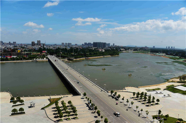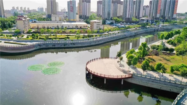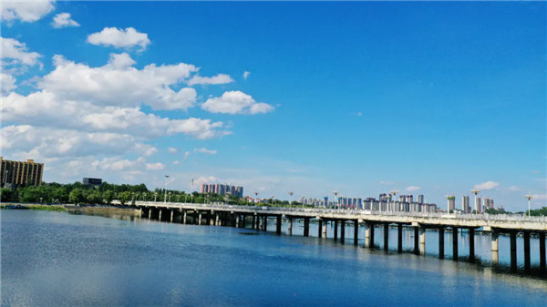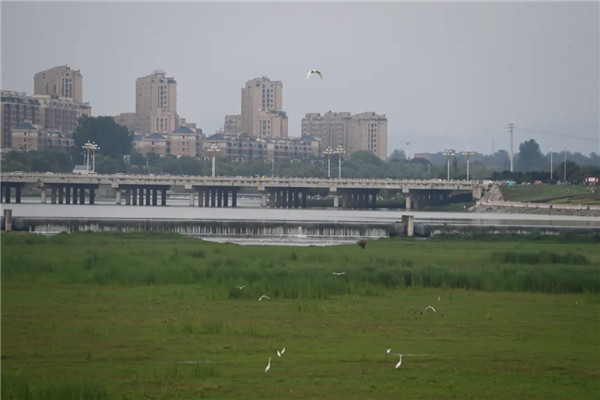仲夏時節(jié),駐馬店市泌陽縣泌水河公園里綠樹成蔭、環(huán)境優(yōu)美,在藍(lán)天白云映襯下,河水像一條美麗的藍(lán)色飄帶環(huán)繞著公園,靜謐的河面、覓食的白鷺……一幅幅美麗畫面令人陶醉。