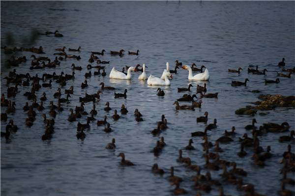 河面上鴨鵝成群 劉藝 攝