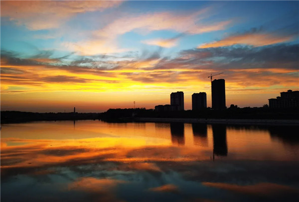 夕陽西下,彩霞滿天。 劉藝 攝