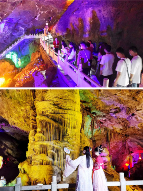 18℃的雞冠洞,洞外暑氣逼人,洞內(nèi)透心涼爽。行走其中,洞象萬(wàn)千,恍若穿梭在時(shí)光隧道,不覺產(chǎn)生洞中方一日、世上已千年的錯(cuò)覺。