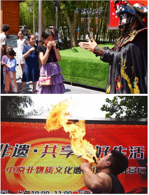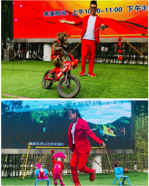 進(jìn)入暑期,在雞冠洞的中心廣場(chǎng),您可免費(fèi)觀看的變臉、噴火等非遺演出,還有猴子戲山羊、猴子騎車、猴子拉車、小狗跳繩等節(jié)目,精彩連連不斷,歡樂多多!