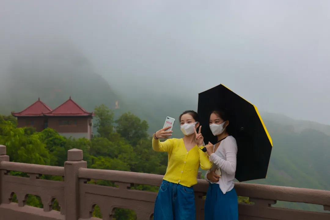 主播小哥哥、小姐姐穿越峽谷,帶你欣賞丹崖碧水;登高望遠,與你一覽壯闊云海,鎖定直播間,“云”游云臺山。