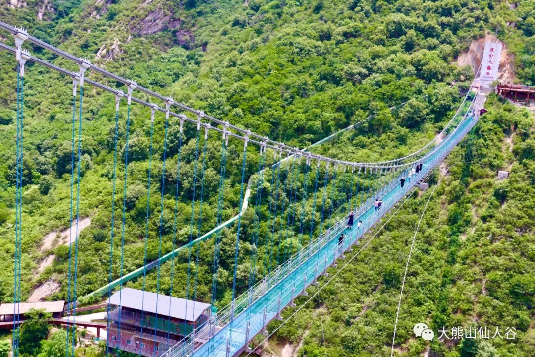 飛雲(yún)天橋——是中原地區(qū)跨度最長(zhǎng)的全透明高空5D玻璃天橋,橋長(zhǎng)266米,垂直落差106米,一橋飛架兩山,現(xiàn)代建筑藝術(shù)與自然山水景觀相存相依,完美呈現(xiàn)。
