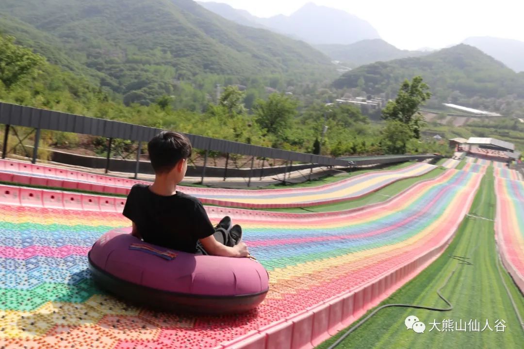 七彩旱滑全長(zhǎng)206米,是由七種顏色組合而成的旱地滑雪體驗(yàn)項(xiàng)目,游客從色彩斑斕的滑道上飛流而下,驚險(xiǎn)、刺激、好玩。