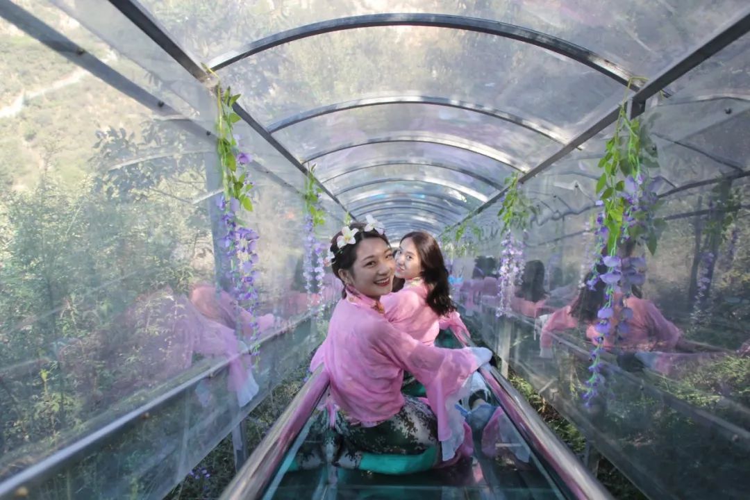玻璃滑道是3D全透明玻璃滑道,滑道長(zhǎng)188米,落差106米,順著山勢(shì)猶如一條銀光閃閃的巨龍隱身在密林叢之中,叢林穿梭,光影飛越,狂飆而下,讓您驚叫、驚魂!