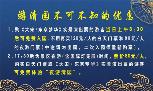 《大宋·東京夢華》演出票因座位有限,建議提前在清明上河園景區(qū)官方旗艦店(淘寶)、美團網(wǎng)、攜程旅游網(wǎng)等網(wǎng)上平臺預(yù)定。