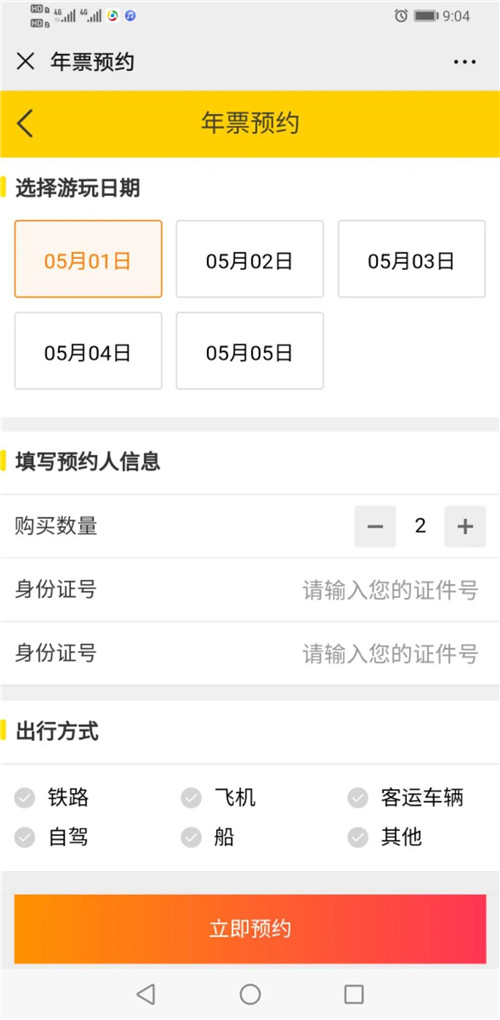 2、年票游客預(yù)約
