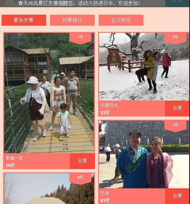 過年就要“曬出美”!! 即日起至3月16日 以“曬最美全家福”為主題的微信投票大賽 也在火熱進(jìn)行中 無論是與家人的合影 還是朋友、同事的親密瞬間 只要與青天河景區(qū)有關(guān)您就可以參賽 更有手機(jī)大獎(jiǎng)等您來拿哦!快來參加吧!
