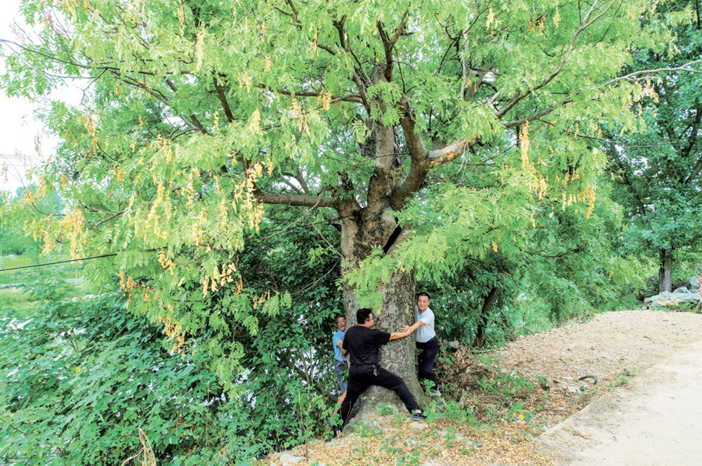 古皂角樹、古槐樹,是這里的守護(hù)者,挺立在村民組正中心、后山崗,見證了古村落的興衰變遷。古樹究竟多少年長成,眾說紛紜,少說也有幾百年了。樹干粗壯挺拔,需3人合抱;樹冠綠蔭如蓋,如同撐開的大傘,為村民提供庇護(hù)。夏日午后,陽光透過樹葉縫隙灑在地面上,形成如夢幻般光影,讓人心生寧靜;樹下老人們談古論今,孩子們嬉戲打鬧……