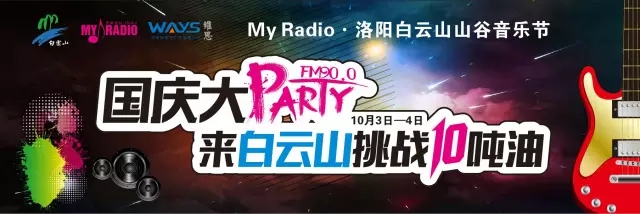 “國(guó)慶大Party 挑戰(zhàn)十噸油”——2016 My Radio加油森呼吸山谷音樂節(jié),將于10月3日至10月4在洛陽白云山景區(qū)震撼上演!為你提供聽覺上的完美體驗(yàn)——高山流水間盡情的揮灑我們的汗水,盡情享受音樂的魅力。
