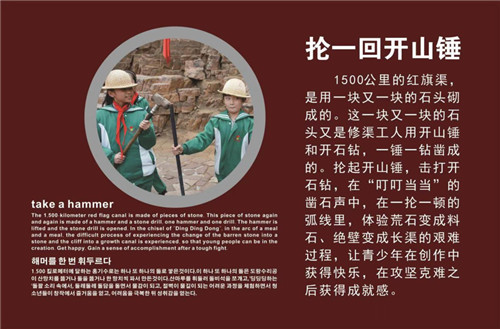 基地增設(shè)了研學(xué)教育實踐平臺,針對青少年量身打造 “三大講堂”+“紅旗渠研學(xué)之旅十個一”為研學(xué)內(nèi)容和載體,逐步豐富紅旗渠研學(xué)旅行活動,增強學(xué)生的社會責(zé)任感、創(chuàng)新精神和實踐能力。