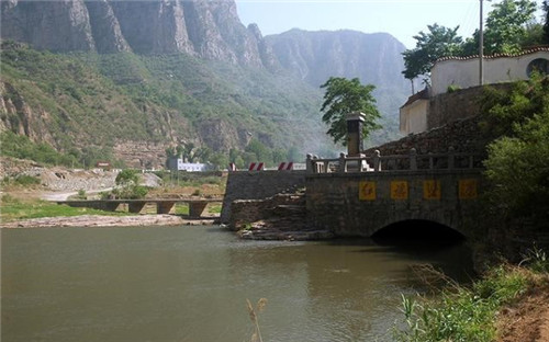 紅旗渠源及渠首攔河壩位于山西省平順縣侯壁水電站下約600米處,由攔河溢流壩、引水隧洞、引水渠、進水閘、泄洪沖沙閘聯(lián)合組成渠道引水樞紐,為無調(diào)節(jié)河道自流引水。溢流壩橫跨河床長95米,最大壩高3.5米,底寬13.46米,頂寬2米,1960年2月10日動工,同年5月1日竣工。
