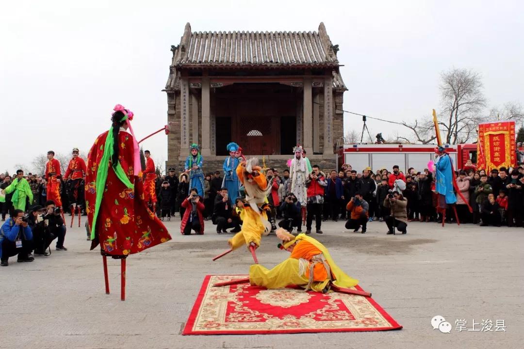 浮丘山上,鑼鼓喧天,實在熱鬧,正月古廟會社火表演助陣此次民俗文化節(jié)開幕式!