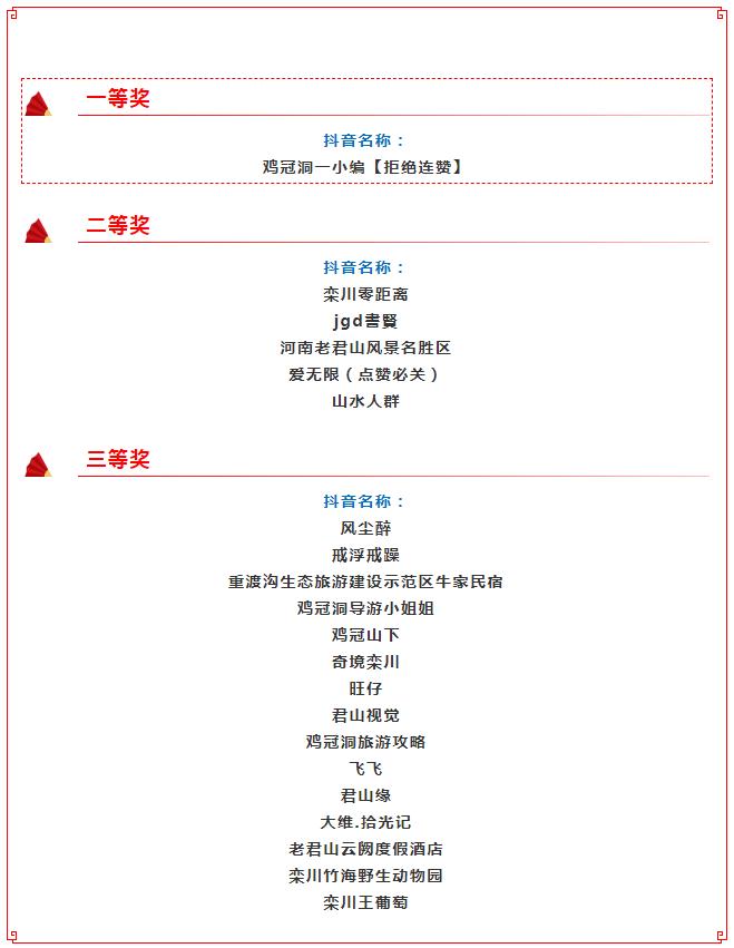 “云游欒川中國年”抖音短視頻話題賽,獲獎名單已出爐!快看看有你嗎?