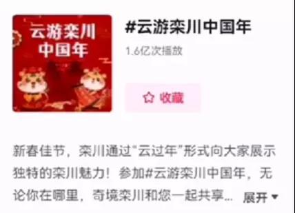 “云游欒川中國年”系列活動通過抖音話題挑戰(zhàn)賽、微信小程序搶驚喜紅包等形式,自2022年1月17日開啟截止至2022年2月15日已圓滿落下帷幕,“云游欒川中國年”系列活動在春節(jié)前后受到了廣大網(wǎng)友的熱烈追捧與支持,引起了社會廣泛關(guān)注。