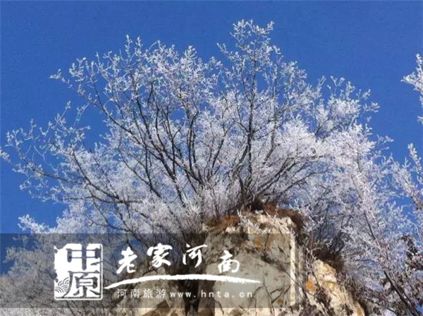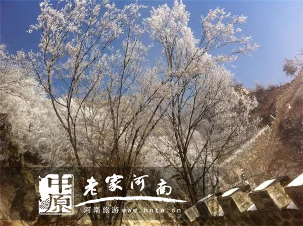 只見樹木花草,或穿上了水晶衣,或裹上了鵝絨被,與巍峨的南太行形成鮮明的對比,好一派夢幻詩意的冰雪畫卷。