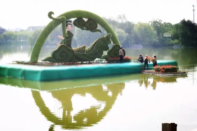 龍亭湖中的水上菊花造型格外引人注目。一邊是一位手撫琴弦的“仙女”身姿飄逸、神情自若,半圓形的造型與水中倒影相映成趣,別有一番情趣在其中;另一邊是“鯉魚飛躍”,菊花含苞待放,顯得精美絕倫、創(chuàng)意十足。