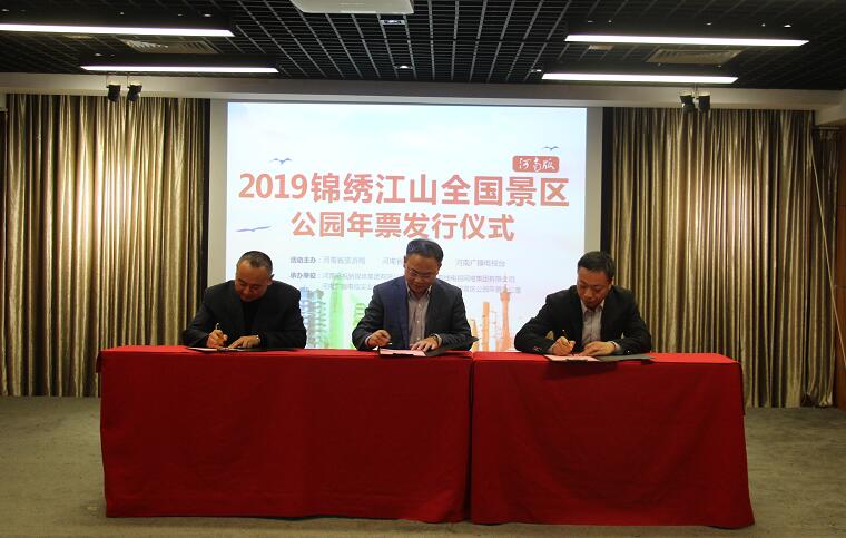 發(fā)行儀式上, 河南有線電視網(wǎng)絡(luò)集團(tuán)、河南廣播電視實(shí)業(yè)發(fā)展有限公司、河南錦繡江山中南科技有限公司三方舉行合作簽約儀式。并現(xiàn)場(chǎng)向全國先進(jìn)工作者河南省檢察院干部白潔、全國抗震救災(zāi)模范河南省新聞出版廣電局網(wǎng)絡(luò)視聽節(jié)目管理處副處長(zhǎng)劉存志、全國五一獎(jiǎng)?wù)芦@得者河南省工商局辦公室主任科員陸詩琴、全國優(yōu)秀農(nóng)民工張紅亮、全國物流系統(tǒng)勞動(dòng)模范張保環(huán)、交通系統(tǒng)的勞動(dòng)模范王麗贈(zèng)送了旅游年票。另外,2018年12月1日至2019年2月28日,2016、2017年度省級(jí)、國家級(jí)勞動(dòng)模范、先進(jìn)工作者憑獲獎(jiǎng)榮譽(yù)證書、工作證、身份證等有效證件,每人可獲贈(zèng)兩張“2019錦繡江山全國景區(qū)公園年票”,在全省18個(gè)省轄市河南有線營(yíng)業(yè)廳領(lǐng)取。