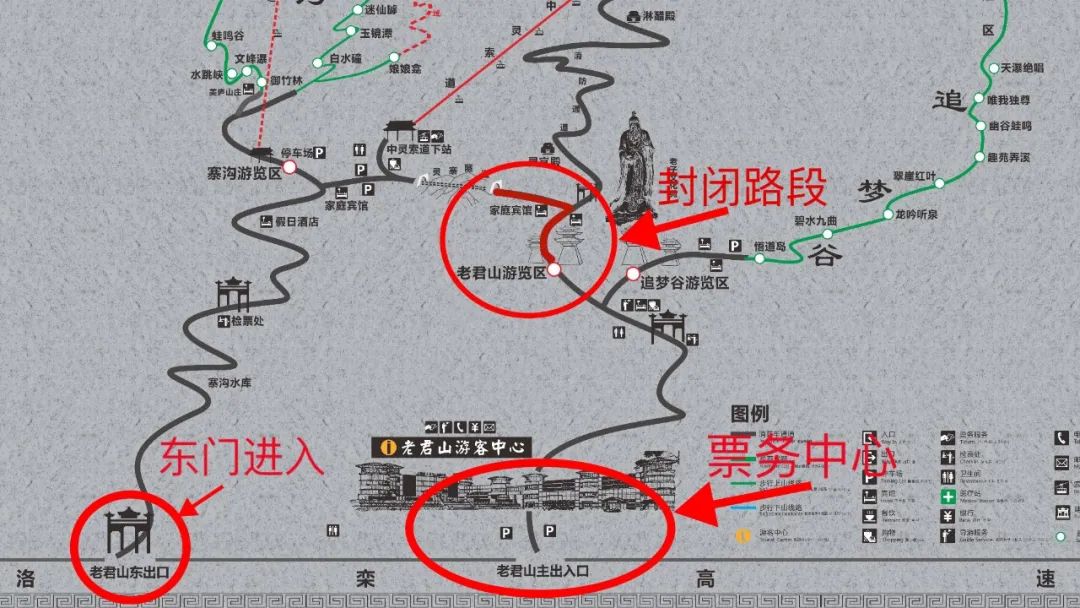 參觀游覽追夢(mèng)谷及老子文化苑的游客仍可由景區(qū)正大門(老君山風(fēng)景名勝區(qū)-正大門)正常進(jìn)入。由此給您游覽帶來不便,敬請(qǐng)諒解!