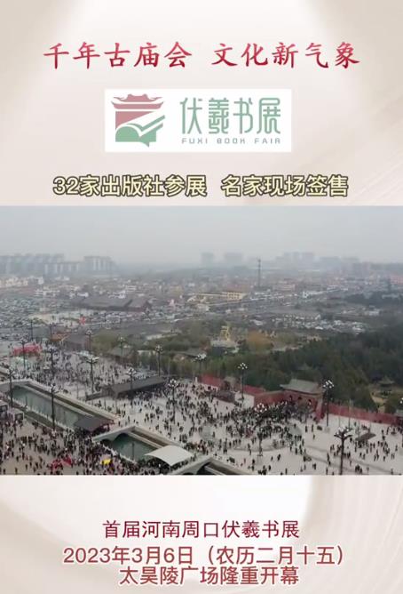為進(jìn)一步深化全民閱讀活動(dòng),推進(jìn)書(shū)香周口建設(shè),由韜奮基金會(huì)支持,中共周口市委宣傳部、周口市文化廣電和旅游局、周口市教育體育局、周口市淮陽(yáng)區(qū)人民政府主辦,人民東方(北京)書(shū)業(yè)有限公司、中國(guó)出版?zhèn)髅缴虉?bào)、新華書(shū)店網(wǎng)上商城、淮陽(yáng)區(qū)文化廣電和旅游局承辦的首屆河南周口伏羲書(shū)展將于3月6日至10日在淮陽(yáng)區(qū)舉辦。
