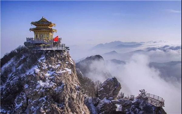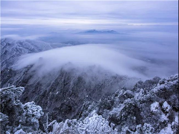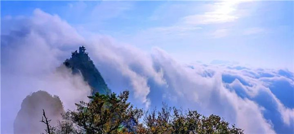冬季老君山的云海最為壯觀,漫無邊際的云,如臨于大海之濱,波起峰涌。