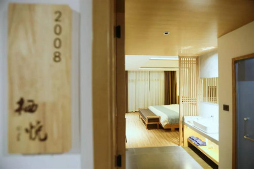 “誰知林棲者,聞風坐相悅”,位于云臺山岸上服務區(qū)的棲悅精品酒店,鬧中取靜,以禪為線,字畫為墨,給游客帶來舒適體驗的同時,邂逅一場自然美景與藝術雕刻自由切換的旅行。