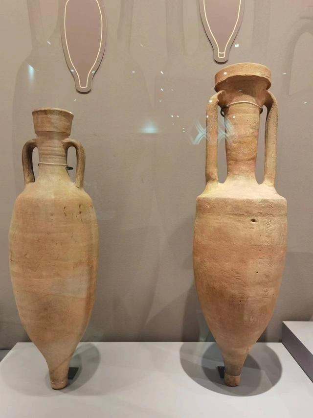 漫步展廳,有幾件羅馬時(shí)代的尖底雙耳酒瓶尤為引人注目,讓人感覺似曾相識(shí),它們跟仰韶時(shí)期代表性文物小口尖底瓶頗為相似。有意思的是,通過一次又一次的反復(fù)研究和論證,仰韶小口尖底瓶被一些專家認(rèn)定為是中國最早的釀酒器或者盛酒器。這種跨越時(shí)空的文化碰撞,讓人忍不住發(fā)出會(huì)心一笑。