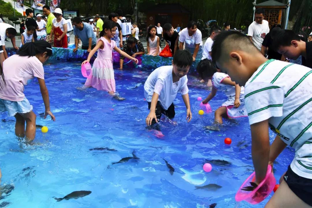 在活動(dòng)現(xiàn)場(chǎng),“捕魚大賽”首先開啟,大人小孩齊上陣,充氣水池內(nèi)水花四濺!現(xiàn)場(chǎng)嘉賓翹首以盼,鮮活的大魚小魚在水中馳聘,仿佛在召喚著游客的大手小手……一些參賽者眼疾手快、迅捷如風(fēng),讓機(jī)警的魚兒也無(wú)法逃脫。