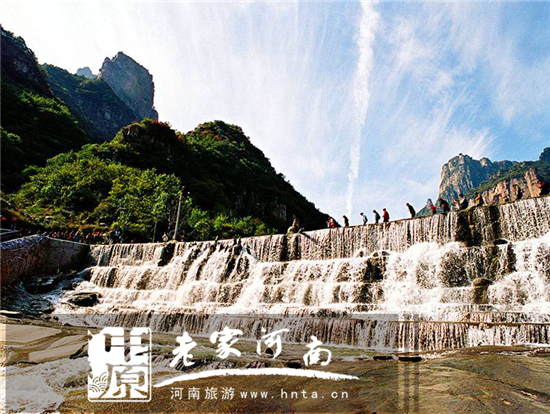 八里溝的美還在青山。山坡上層層樹林,高低參差;懸崖之上青林茂密;有三級紅巖絕壁美譽(yù)的太行山盡顯陽剛之美。如果說八里溝的水是美人,那么八里溝的山堪稱英雄了。青山綠水,就如同英雄和美人了。