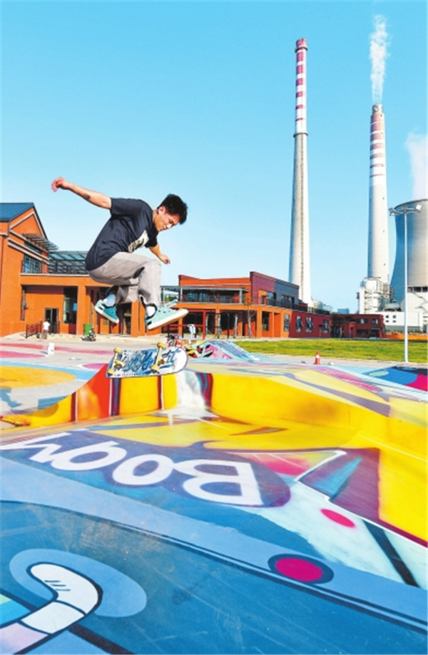 滑板愛好者在洛陽一家工業(yè)游園內(nèi)練習。張光輝 攝