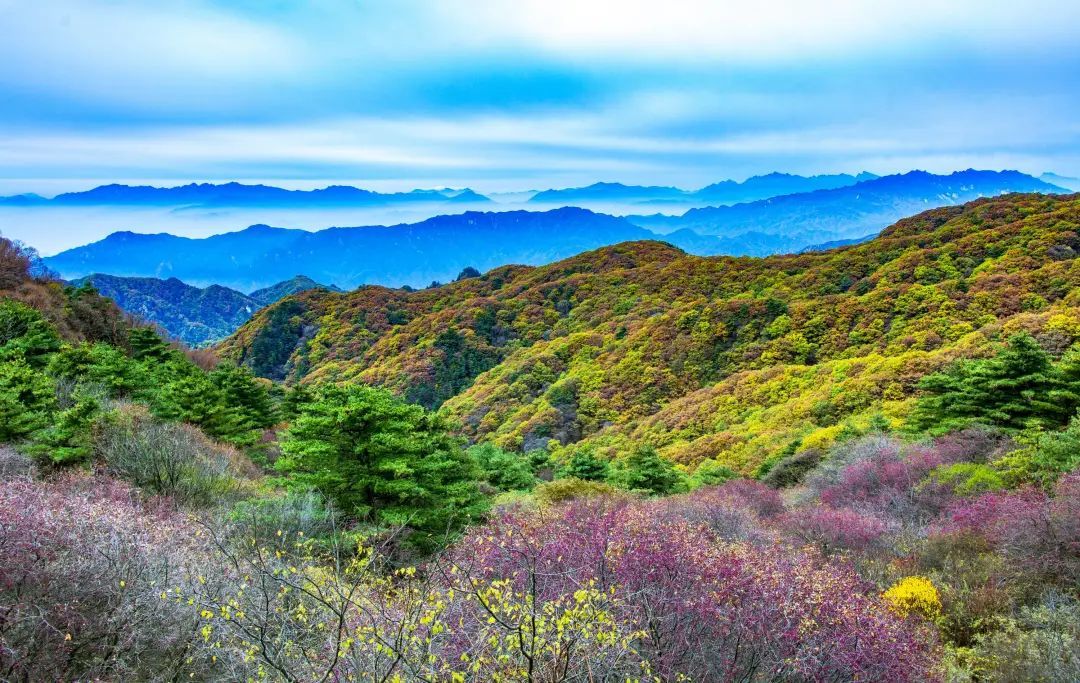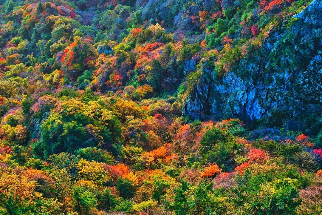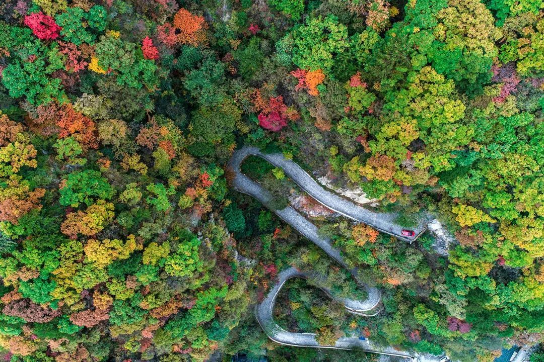 翻開(kāi)秋日的相冊(cè),看看堯山風(fēng)景名勝區(qū)的樣子,能想到的最貼切的形容詞“五彩斑斕的紅”。