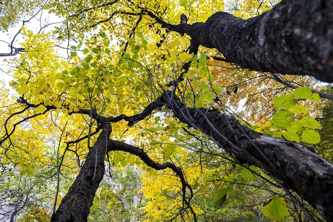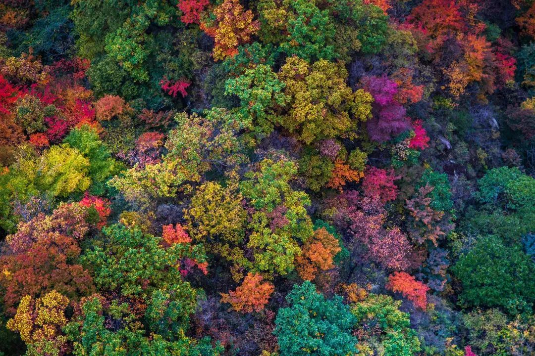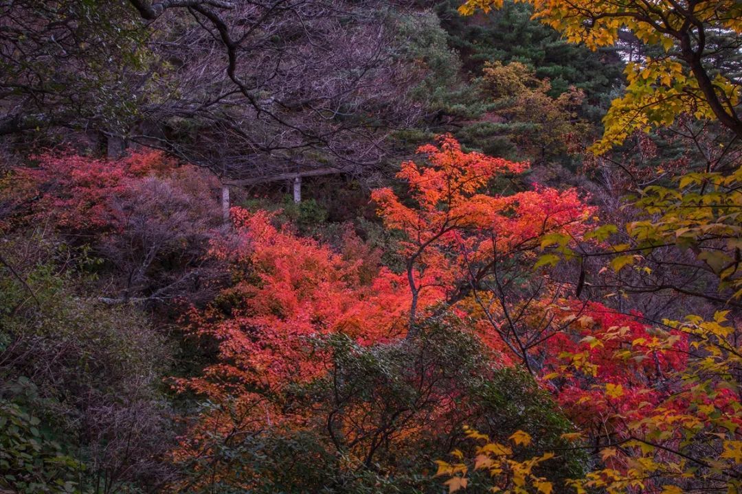丹紅、絳紅、緋紅、赤紅、土黃、橙黃、金黃……像極了天上被打翻了的調(diào)色盤,暈染了整個(gè)堯山,邂逅堯山紅葉。