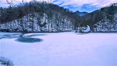 下了雪的白云山,千峰萬嶺,極目一望,盡是白色。雪,是掉落在人間的精靈。雪后,茫茫的山野一片雪白,樹上掛滿了銀條,草坪也披上了銀裝,房舍、群山披上了銀裝,天地河山,清純潔凈。