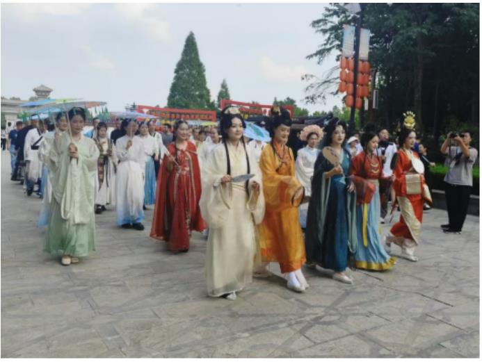 依托漢文化資源建立起的芒碭山旅游區(qū),是一處集漢文化體驗、山水觀光、文藝演出等于一體的國家5A級旅游景區(qū)。近年來,景區(qū)開發(fā)了“穿漢服、習漢禮、賞漢舞、食漢宴”的漢代禮儀體驗活動,先后為游客組織了數(shù)百場開筆禮、成童禮、成人禮、漢式婚禮、敬老禮等禮儀活動。同時推出《劉邦斬蛇》《大漢禮樂》《中原儺舞》等歷史情景劇和演出活動,還引入了活字印刷、漢舞、漢服走秀等漢文化特色產(chǎn)品。