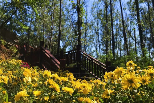 登高望遠(yuǎn),花枝輕顫,伴著風(fēng)的呢喃,樹影朦朧,透著光的溫柔,云卷云舒,秋聲清淺,坐看人間忽晚,山河已秋。