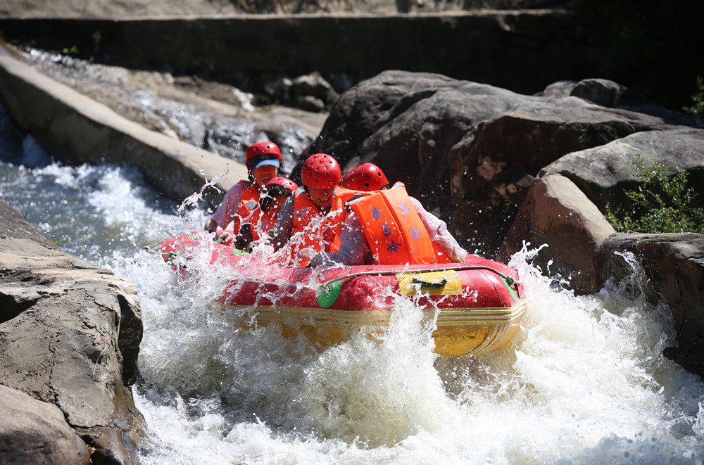 游客在新縣武占嶺生態(tài)旅游度假區(qū)體驗漂流 周濤 攝
