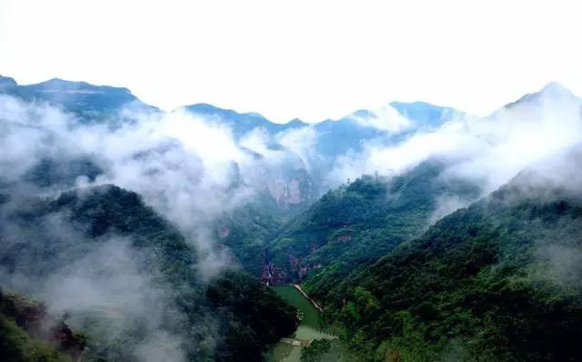 秋雨綿綿,涼風(fēng)習(xí)習(xí)。雨中的龍?zhí)洞髰{谷,一片朦朦朧朧的,早已美成了一幅畫。