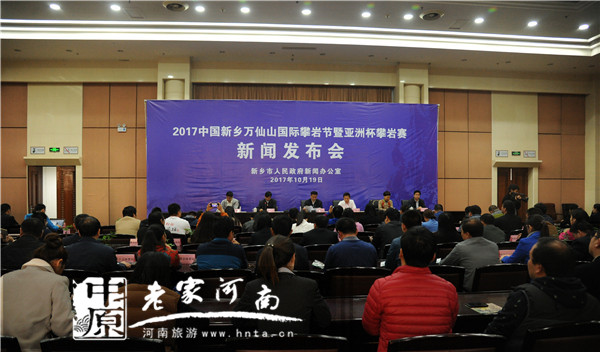10月19日上午,2017中國新鄉(xiāng)萬仙山國際攀巖節(jié)暨亞洲杯攀巖賽新聞發(fā)布會在新鄉(xiāng)市政府三樓第二會議室舉行。主辦單位國家體育總局登山運(yùn)動(dòng)管理中心、新鄉(xiāng)市人民政府,承辦單位新鄉(xiāng)市外事僑務(wù)旅游局、新鄉(xiāng)市體育局、新鄉(xiāng)南太行旅游有限公司等相關(guān)單位,以及國家、省市級20余家新聞媒體記者參加了本次新聞發(fā)布會。應(yīng)邀出席發(fā)布會的還有旅行社、酒店和各大企業(yè)代表。
