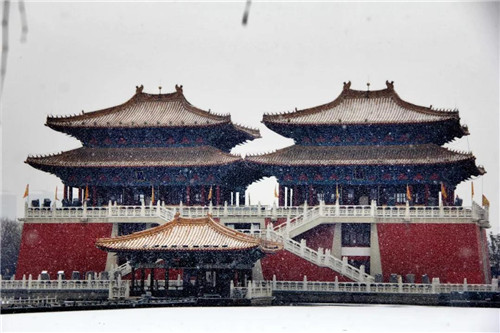 雪似乎集結(jié)了世間所有的白,純潔、安靜、美好,雪下的世界變得安靜純白,干凈純粹,宛如神圣的愛情一般通透。來清明上河園,等一個人,看一場雪。