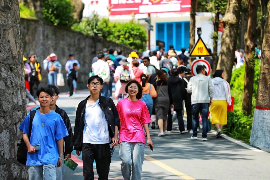 “五一”小長假是出游高峰,迎來了游人如織的畫面,趁著難得的假期,和家人朋友旅游放松,成為不少旅客的選擇。在旅游志愿者、游客、景區(qū)各部門的共同努力下,文明旅游成為了雞公山假日旅游新風(fēng)尚。