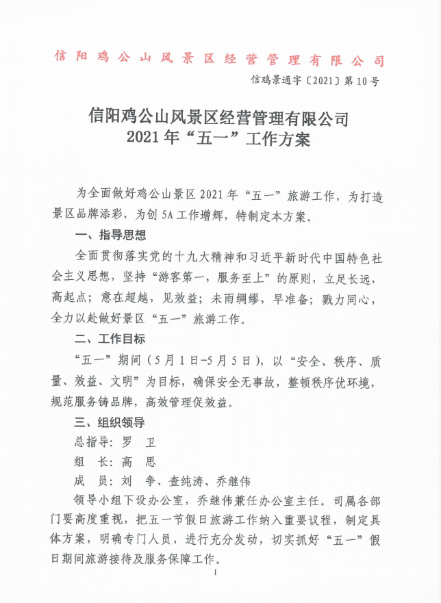 “五一”小長假前夕,雞公山景區(qū)精心準(zhǔn)備、周密部署。為全面做好雞公山景區(qū)2021年“五一”旅游接待工作,召開了雞公山景區(qū)2021年“五一”假日旅游接待動員會,制定并下發(fā)了《信陽雞公山風(fēng)景區(qū)經(jīng)營管理有限公司2021年“五一”工作方案》和《信陽雞公山風(fēng)景區(qū)經(jīng)營管理有限公司2021年“五一”假期旅游接待應(yīng)急管理預(yù)案》,成立了以董事長為組長的工作領(lǐng)導(dǎo)小組。司屬各部門召開了部門例會貫徹落實公司整體工作要求并制定部門工作方案及應(yīng)急預(yù)案。對景區(qū)所有工作人員提出了“以人為本,以游客為中心”的明確要求,竭誠為游客服務(wù),努力為廣大游客打造一個最溫馨最舒適的假期。