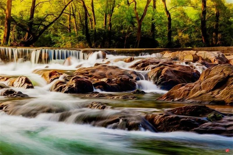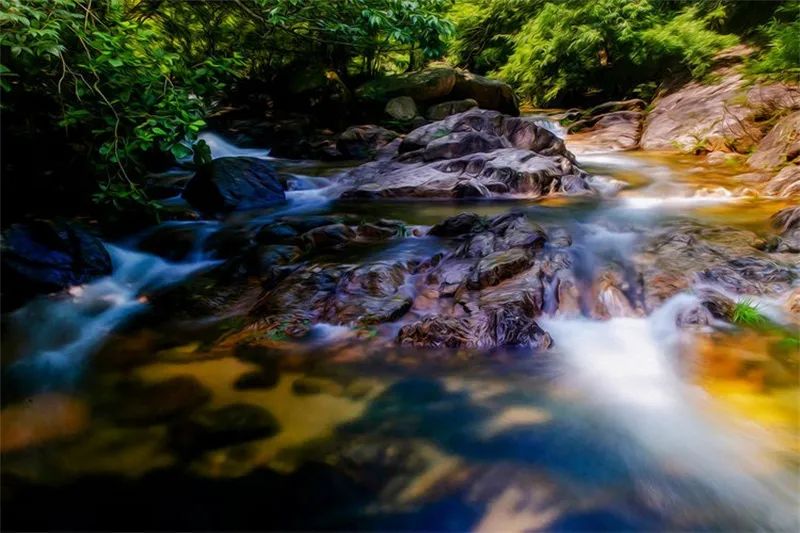 靈動(dòng)的溪流,倒映著濃得化不開的翠綠,定格下七彩斑斕的流云,懷抱著云蒸霞蔚的群山。磅礴的山,靈動(dòng)的水,詭譎的云……大自然的鬼斧神工造就出人間仙境,輕輕觸動(dòng)你我靈魂。