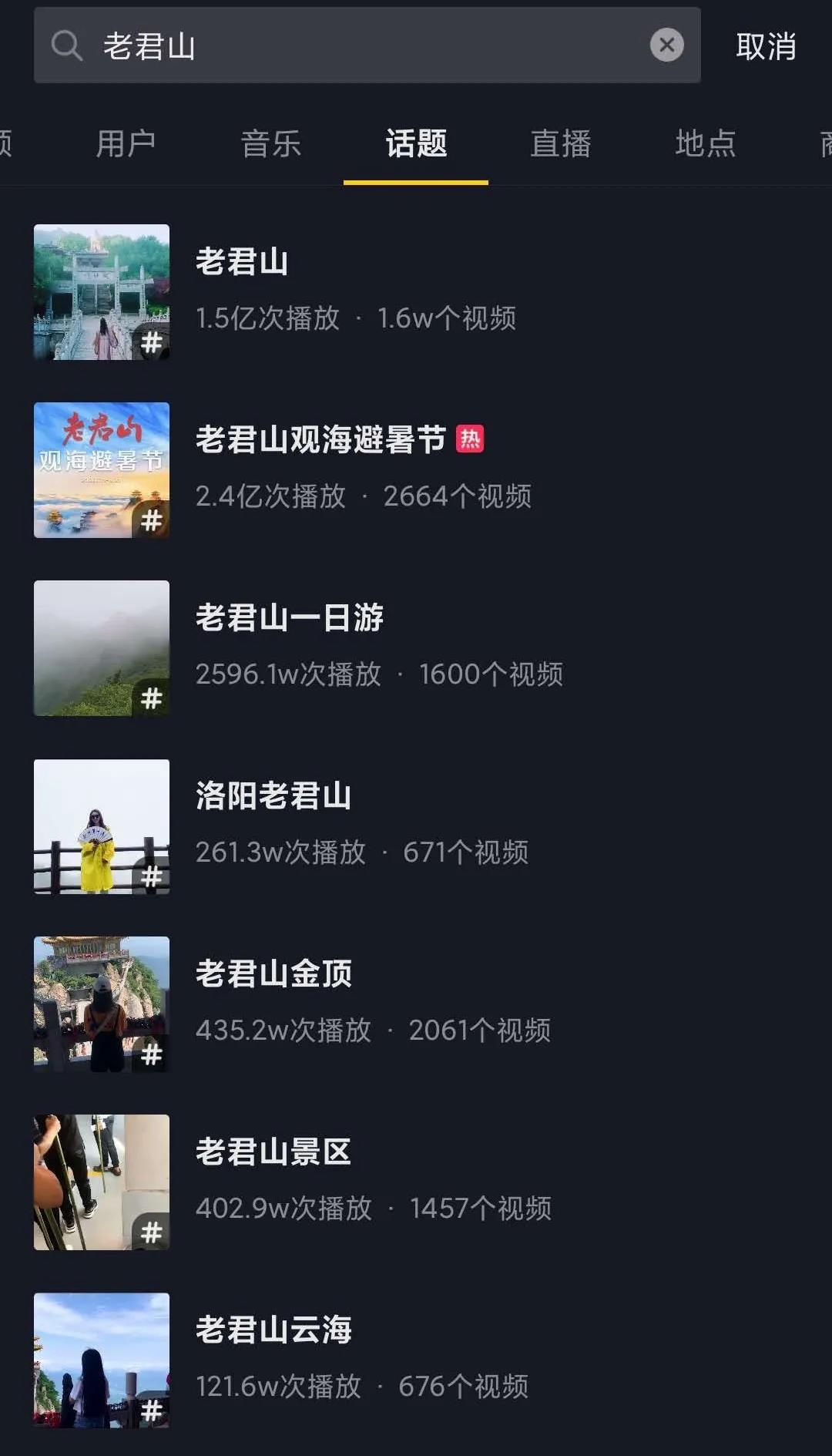 ▼某視頻平臺(tái)顯示老君山景區(qū)話題量
