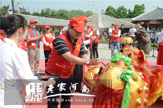 省旅游局副巡視員潘進(jìn)軍,永城市副市長梁廷振共同為獅子點(diǎn)睛啟動(dòng)開幕式