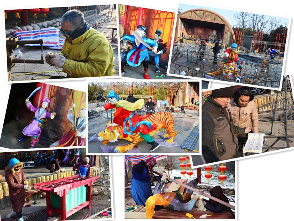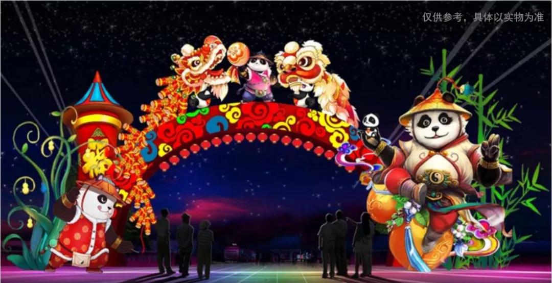 今年的廟會(huì)整體氛圍以寓意紅火吉祥的“中國紅”為主色調(diào),武俠文化、民俗文化為主背景,流行元素為點(diǎn)綴。日間和夜間(燈會(huì))造型進(jìn)行了交互式設(shè)計(jì),造型元素晝夜相結(jié)合,獨(dú)具特色。6大主題板塊,100 余組造型,10余組各色彩門花廊通道,燈籠、旗幟、中國結(jié)、春聯(lián)福字、剪紙年畫等一系列傳統(tǒng)春節(jié)裝飾應(yīng)有,打造老少皆宜的年味氛圍,還原經(jīng)典年味場(chǎng)景。