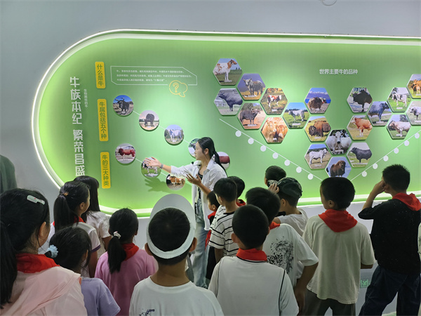隨后孩子們又來到牛文化研學(xué)館,開啟了一場(chǎng)別開生面的文化之旅。孩子們通過聆聽牛的故事,觸摸真牛皮及牛手工制品,從歷史、文化、生命科學(xué)、人文藝術(shù)、生態(tài)文明等不同角度全方位探索牛的世界,深入了解牛文化的深厚底蘊(yùn),感受農(nóng)耕文明與現(xiàn)代科技相結(jié)合的獨(dú)特魅力,體驗(yàn)了不一樣的快樂。